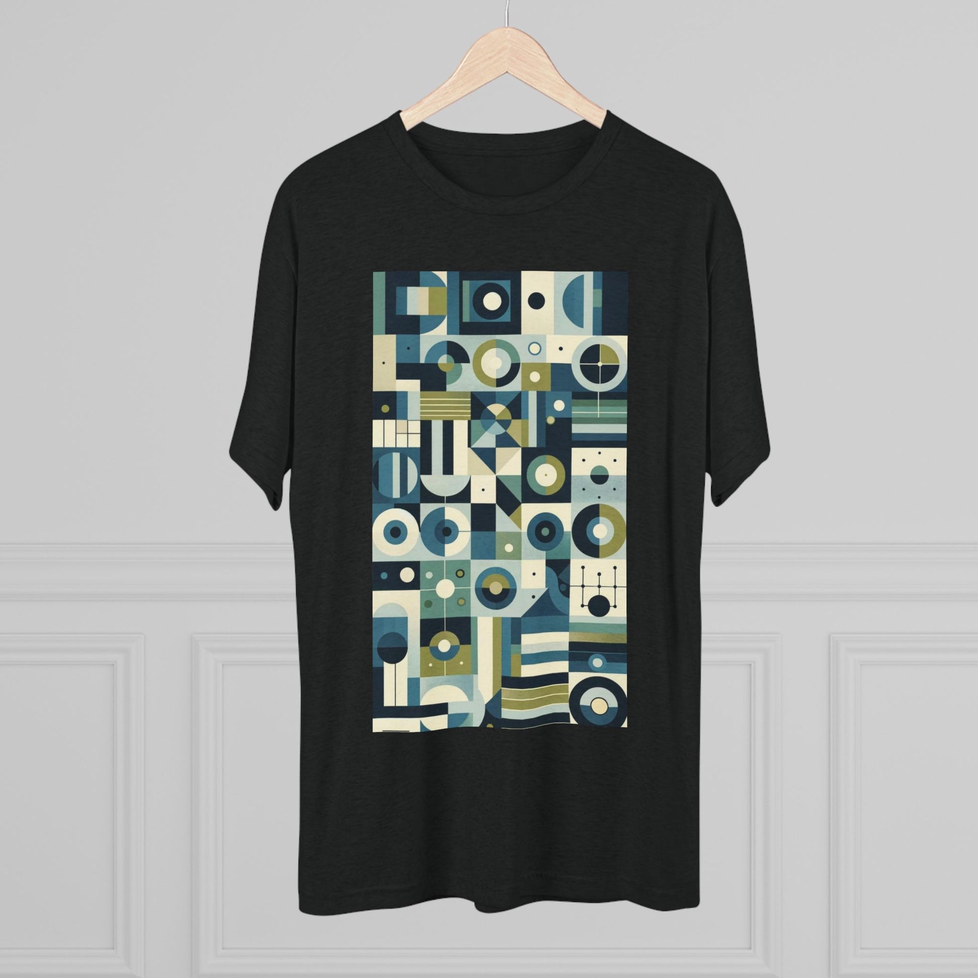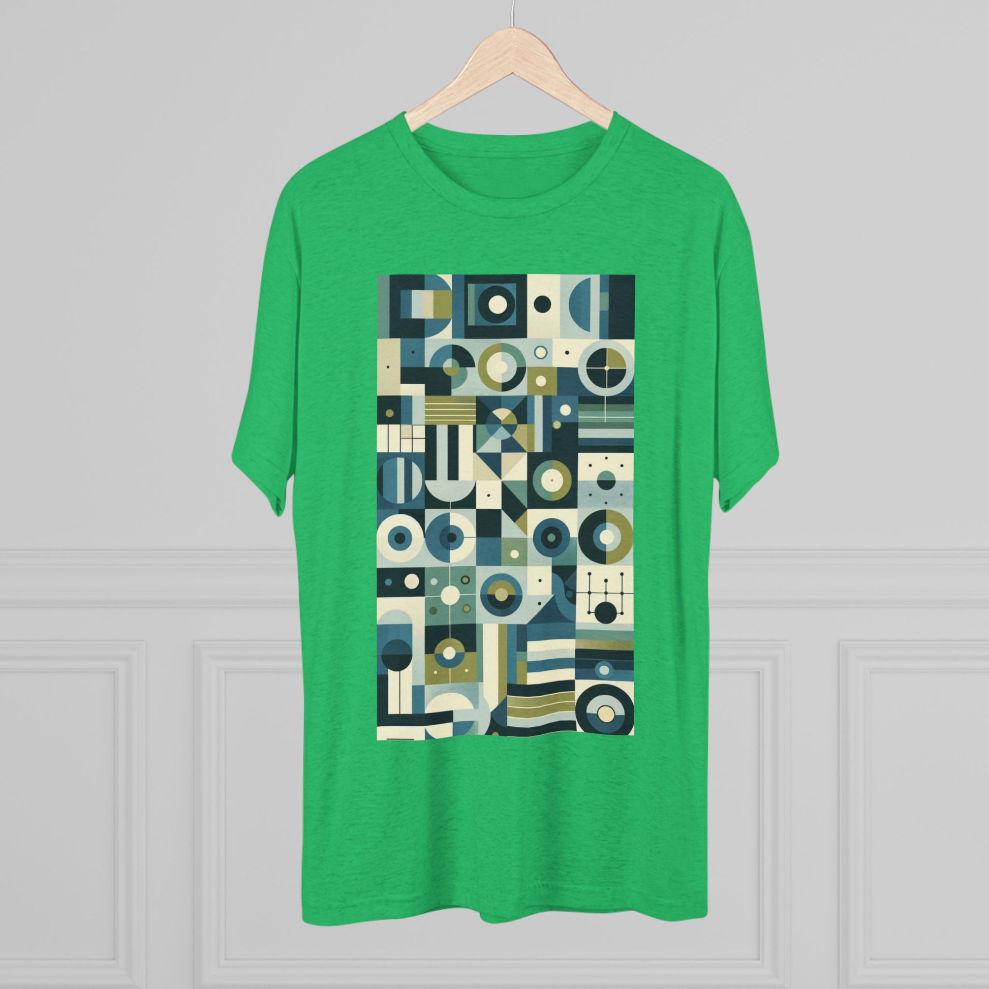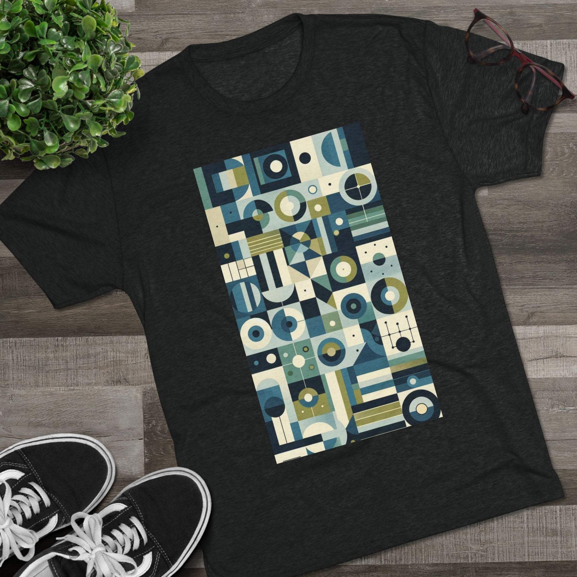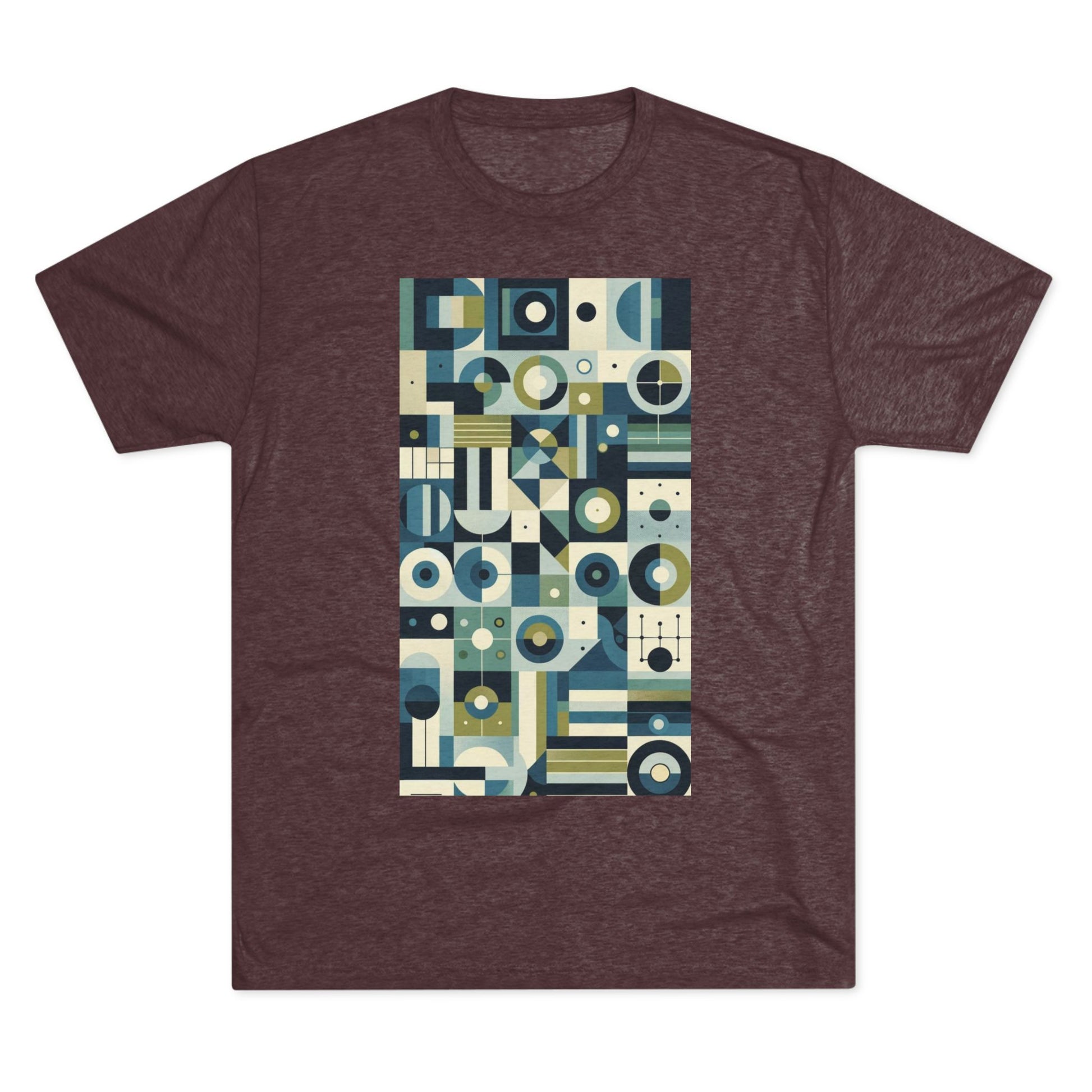 Show off your modern edge with this Geometric Abstract Tee! Featuring a striking vertical panel of retro-inspired shapes, lines, and circles in cool, muted tones, this shirt turns minimalist art into wearable style. The bold, blocky design pops against a soft heather gray background, making it a standout piece for creative thinkers and trendsetters alike.