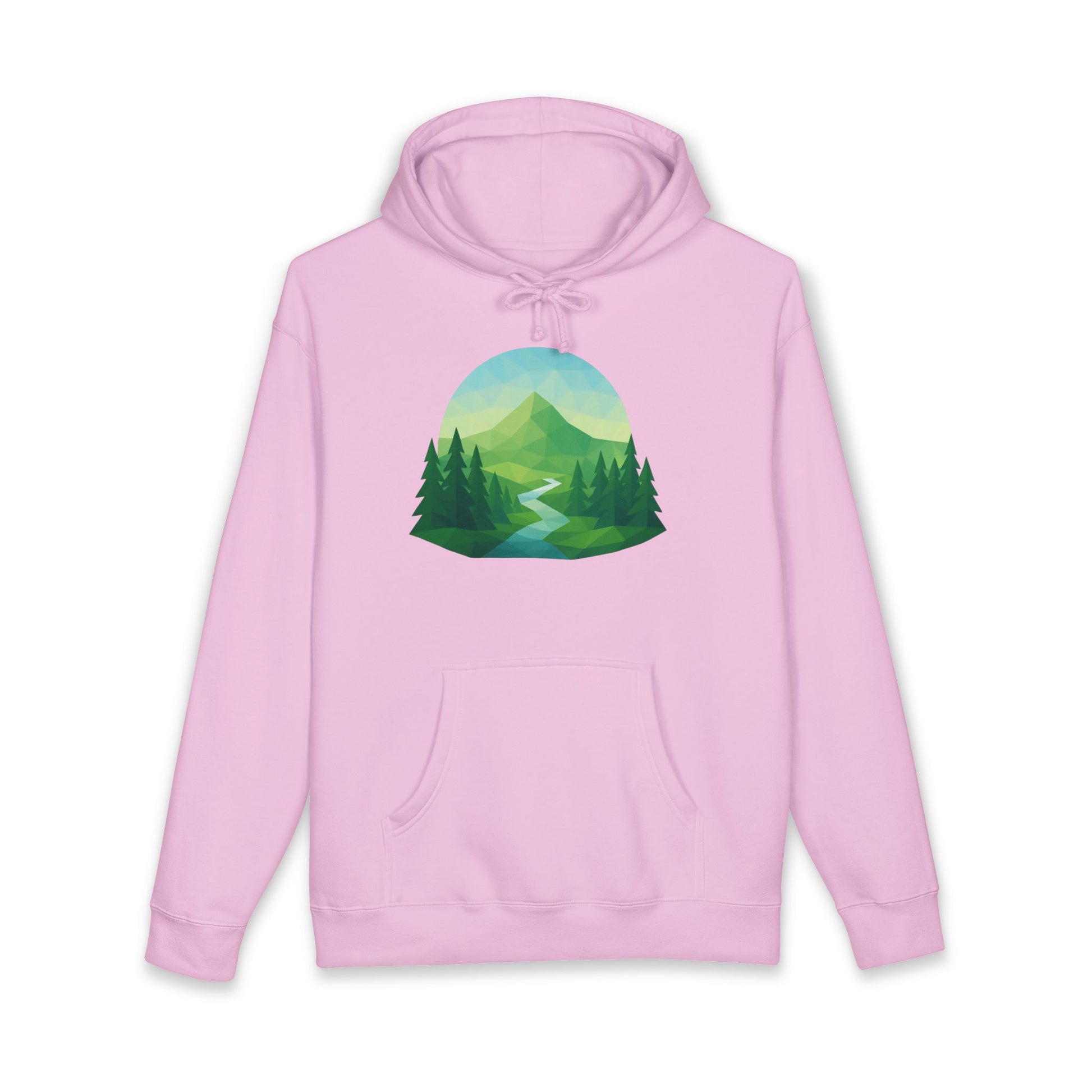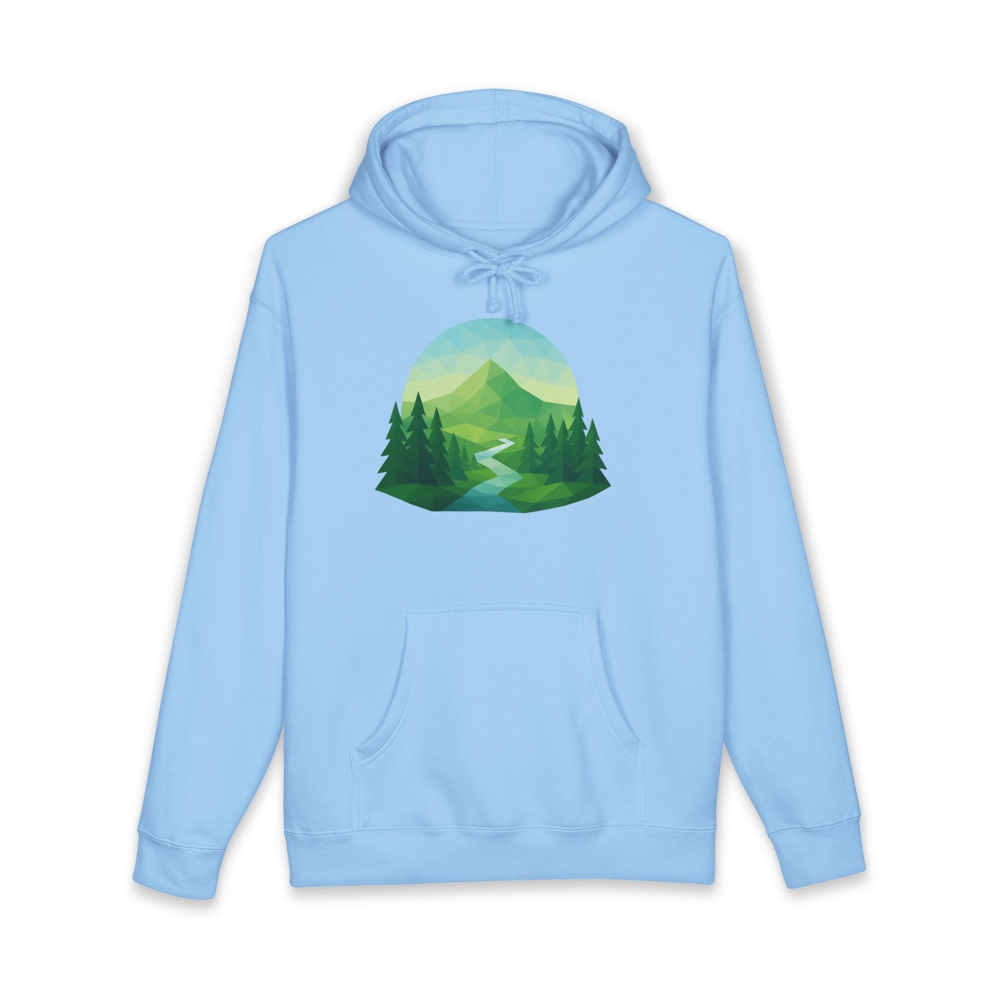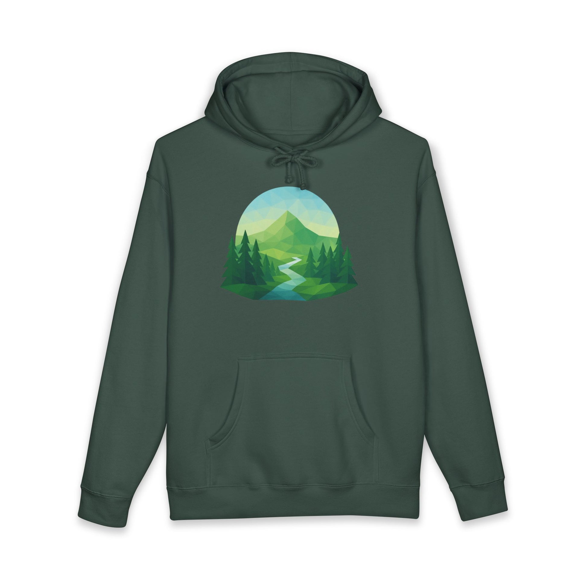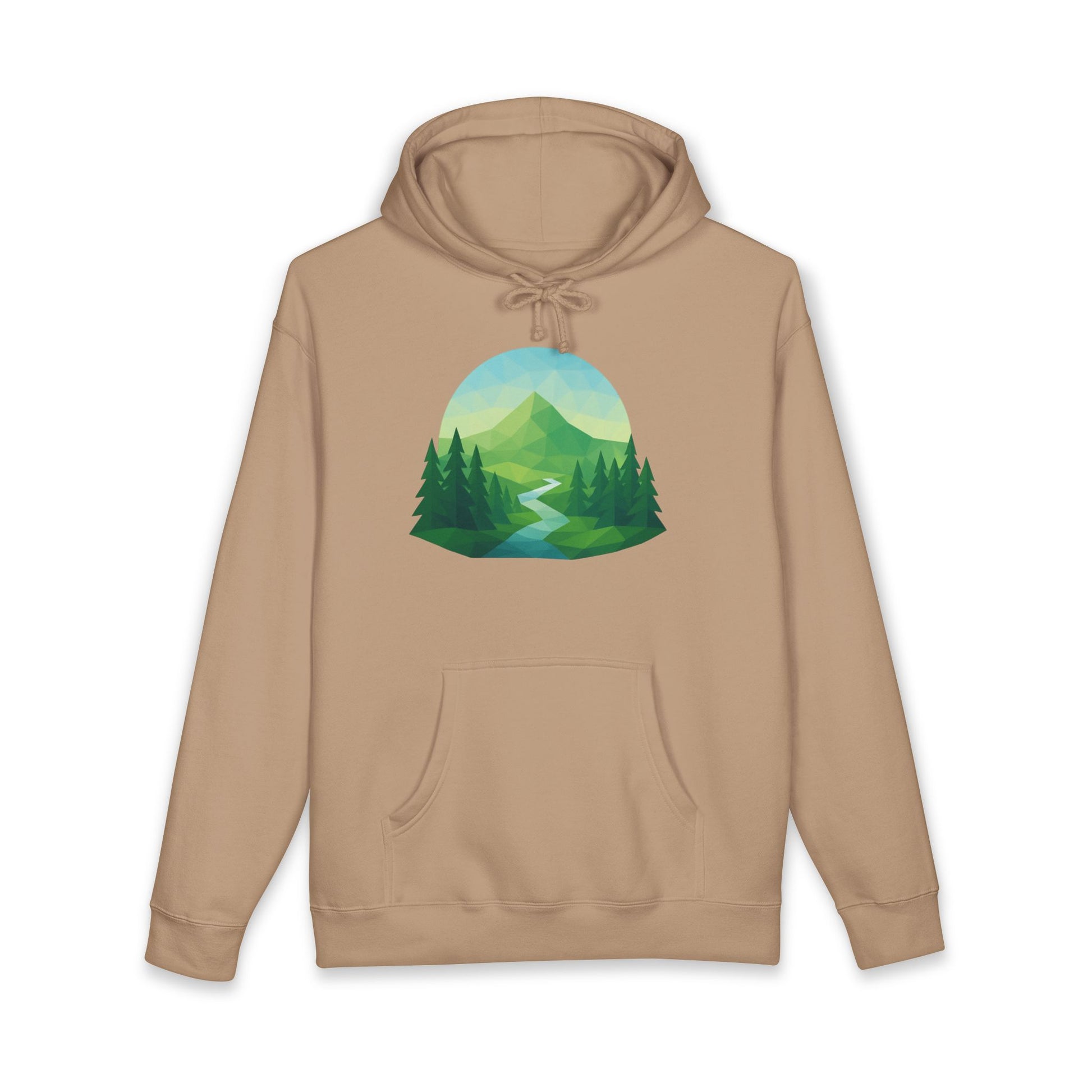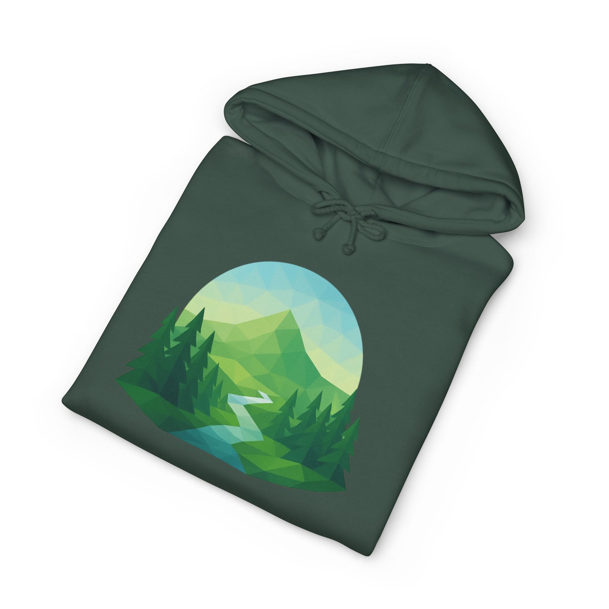Soft, substantial, and quietly adventurous — this heavyweight hooded sweatshirt wraps you in fleece-lined warmth while carrying a small, serene landscape on the chest. The illustrated mountain valley and winding river feel like a breath of fresh air: calm greens, gentle gradients, and a silhouette of evergreen trees that nod to trail days, campfire evenings, and slow weekend drives. It’s roomy enough to layer over flannels and base layers, and the tear-away label keeps things chafe-free when you’re on the move. Wear it to warm up after a hike, while sipping coffee on a foggy morning, or as your go-to layer for low-key gatherings where comfort matters more than fuss.