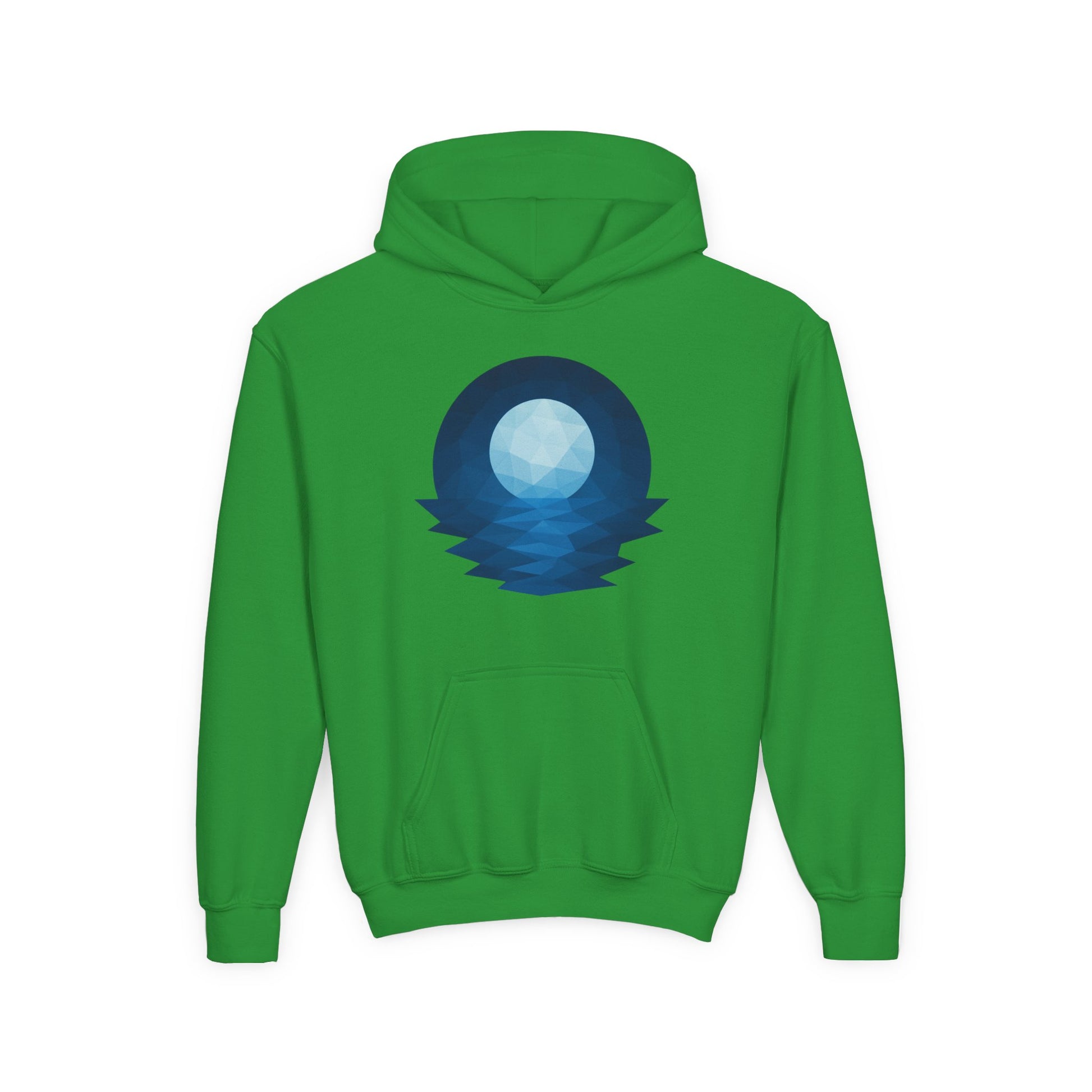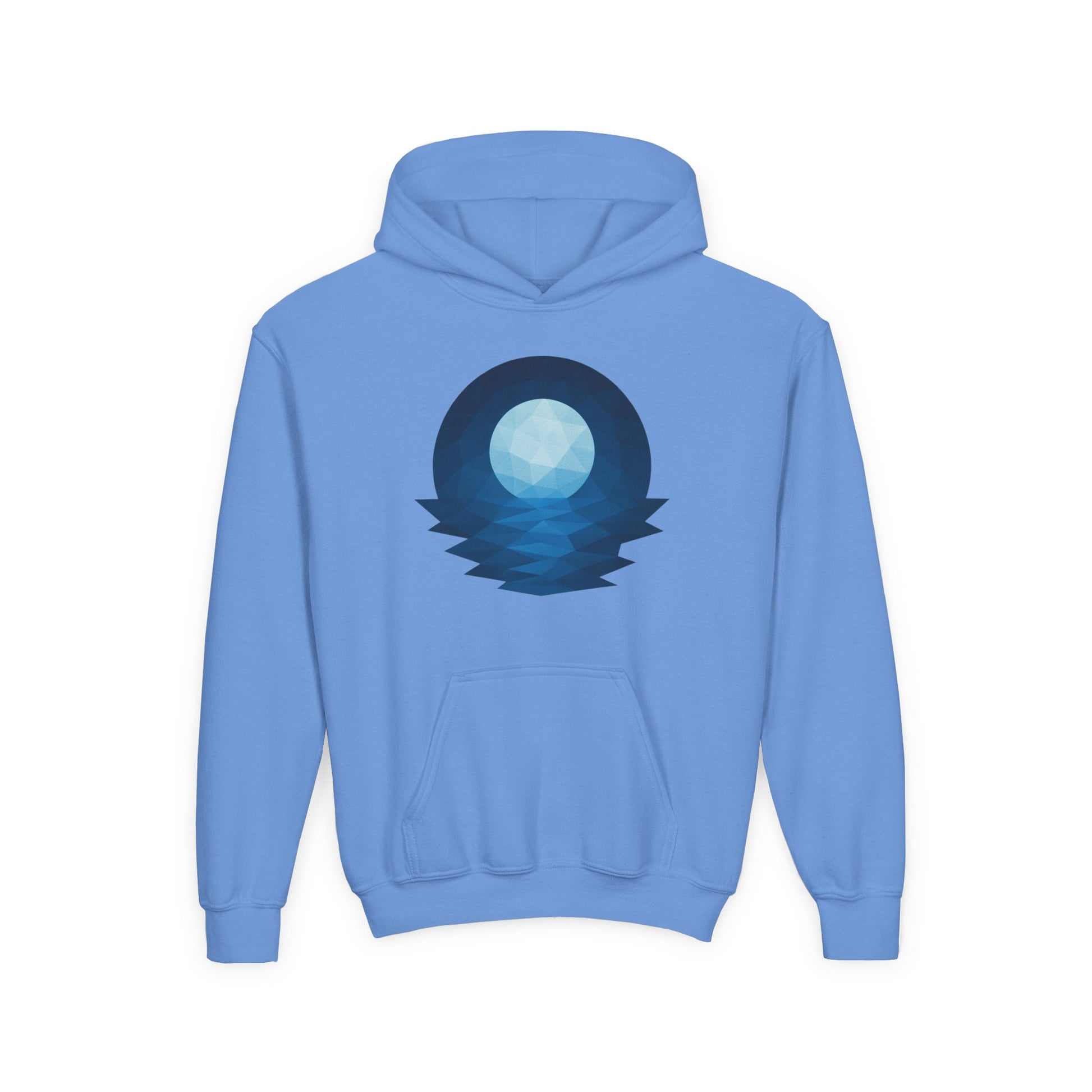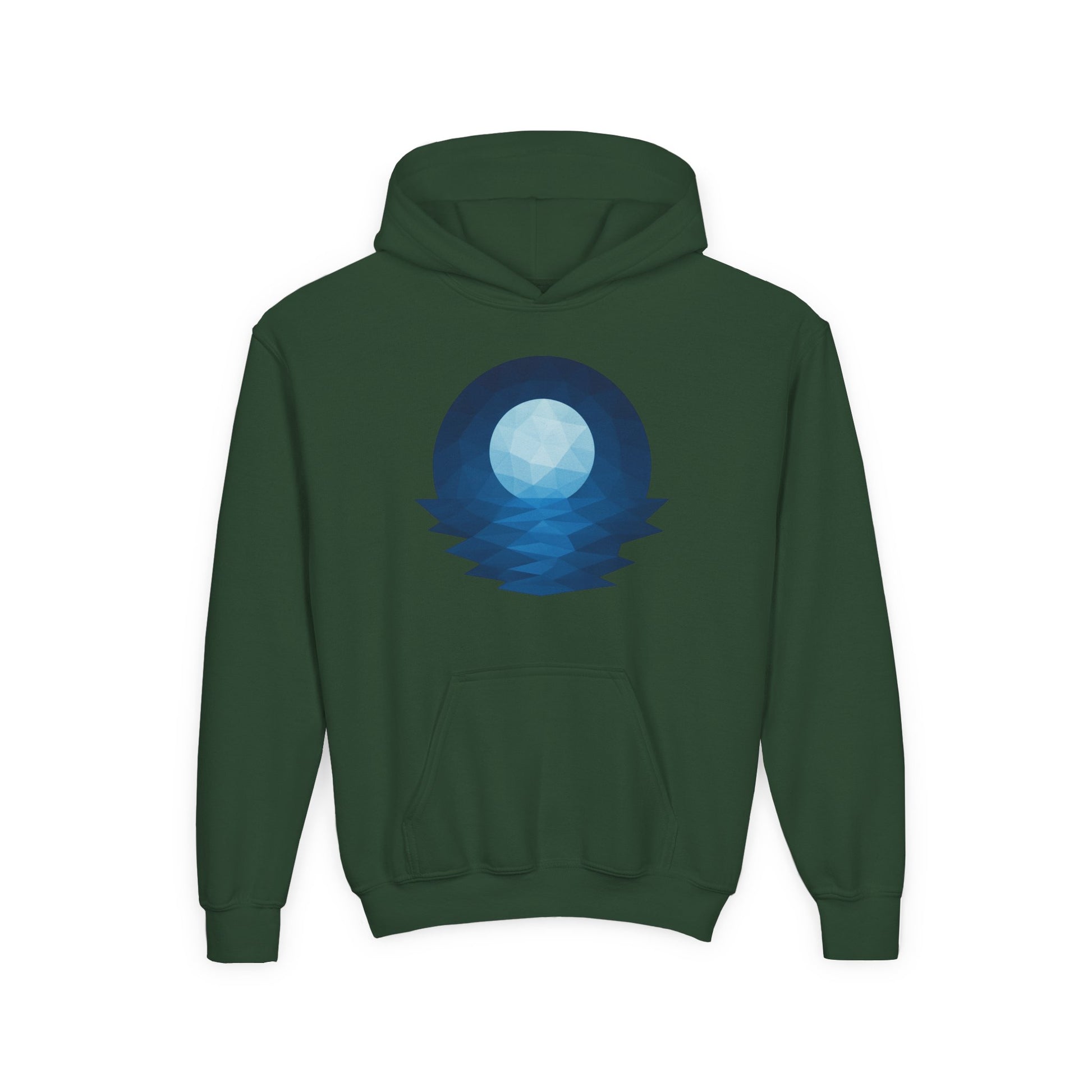 A cozy youth hoodie that brings quiet, starlit evenings to everyday play. The soft, midweight blend holds a crisp geometric moon-and-sea print on the chest, evoking calm nights by the water. Designed for kids who like simple, thoughtful visuals and layers that move with them. The roomy pouch pocket keeps hands warm on cool mornings. Durable knit and stable necktape stand up to frequent wear, while the option for subtle embroidered chest details makes it feel a little more personal.