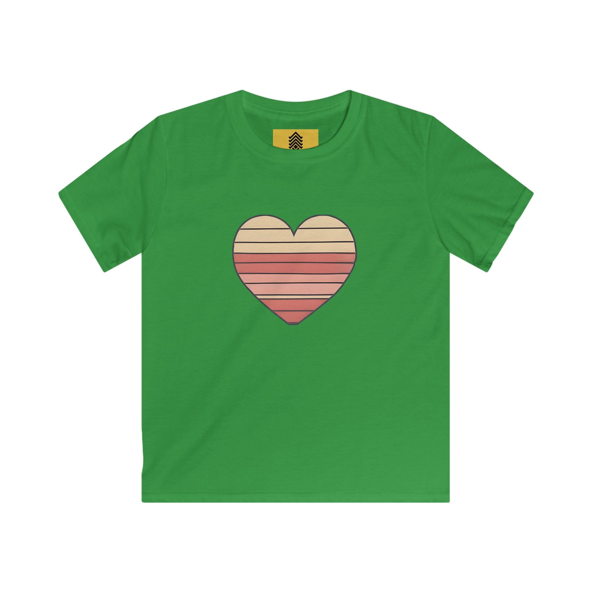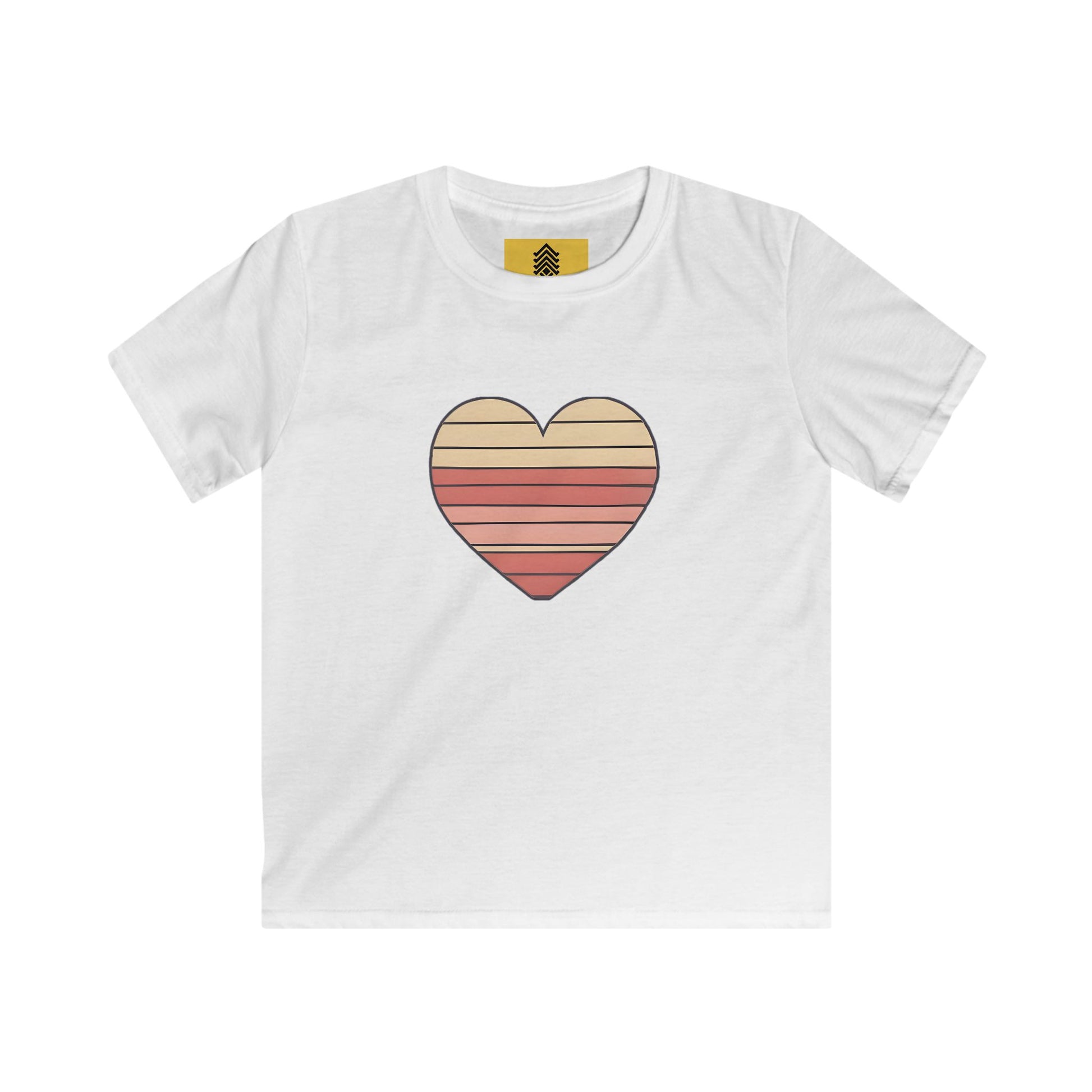 Let your little one wear their heart on their tee! This adorable kids' t-shirt features a big, cheerful heart in soft retro-inspired stripes—perfect for celebrating Valentine’s Day in style. The heart motif pops against a classic white background, making it a sweet and versatile choice for any festive occasion.