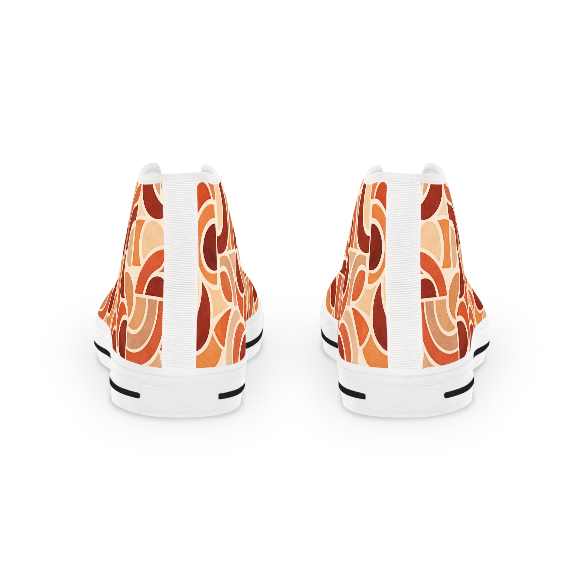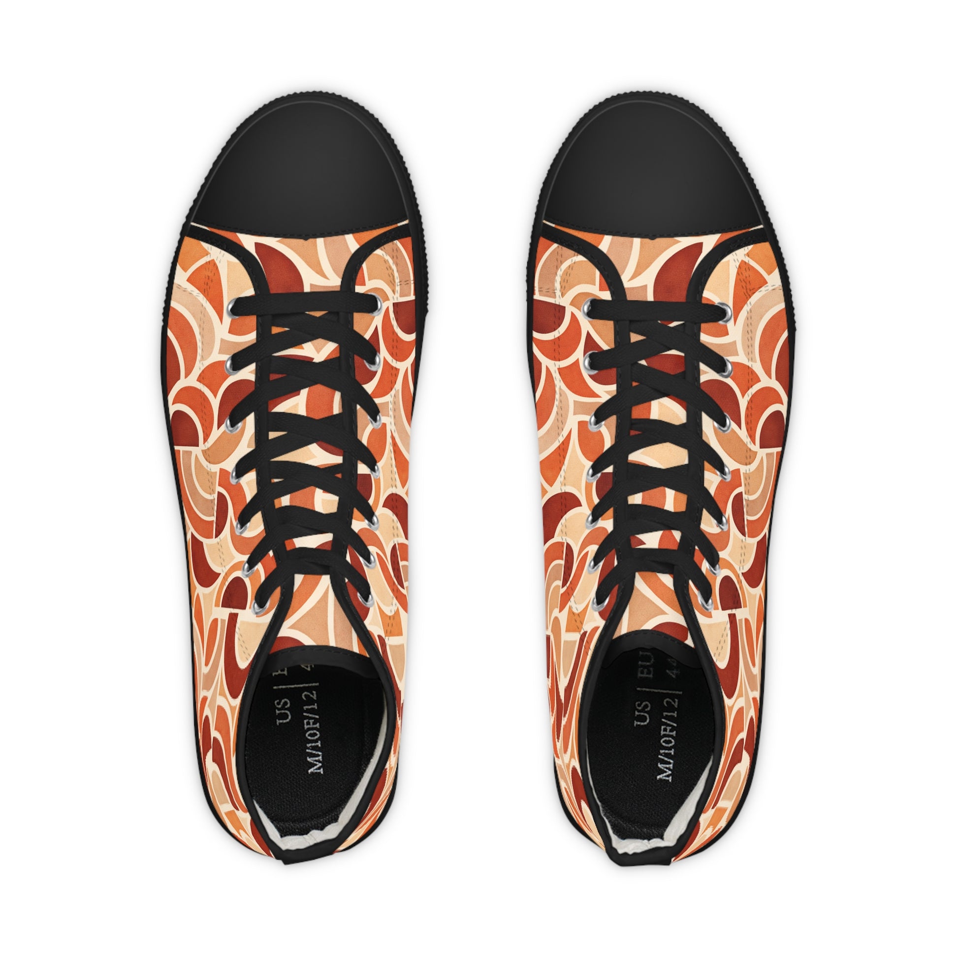 Stand tall in style that’s anything but ordinary. The Sunset Circuit Men’s High-Tops bring bold, retro curves in sunbaked orange, clay, and cream—wrapping your ankles in statement-making pattern. Built for real life, these high-tops feature a reinforced pleather toe, sturdy metal eyelets, and a cushioned collar for extra support. Inside, hi-poly memory foam and EVA layers keep every step light and comfortable, whether you’re hitting city streets or weekend hangouts. Lace up the white laces, roll up your jeans, and let your shoes do the talking—these kicks are for guys who don’t blend in.