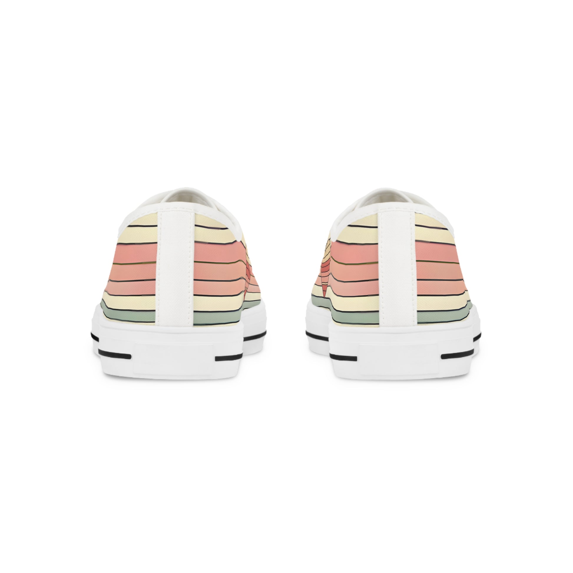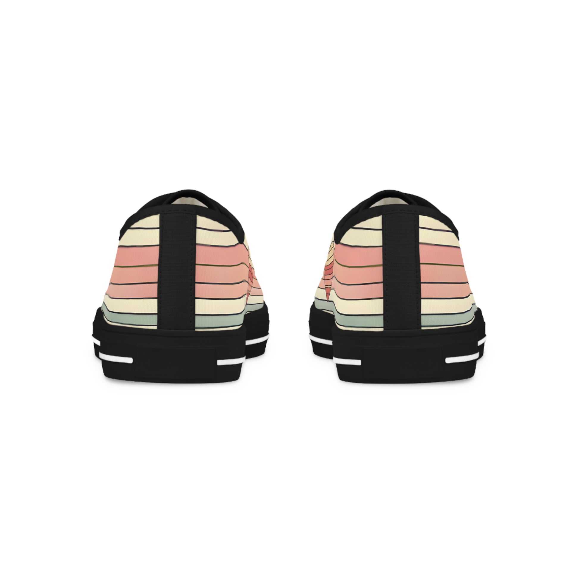 Put a little love in every step with these standout low top sneakers! Featuring a retro-inspired design with soft pink, blush, peach, and creamy ivory stripes and a bold heart motif on the sides, these kicks bring playful Valentine’s Day energy to a classic sneaker silhouette. The black sole and accents add a modern edge, making them the perfect statement for any casual outfit.