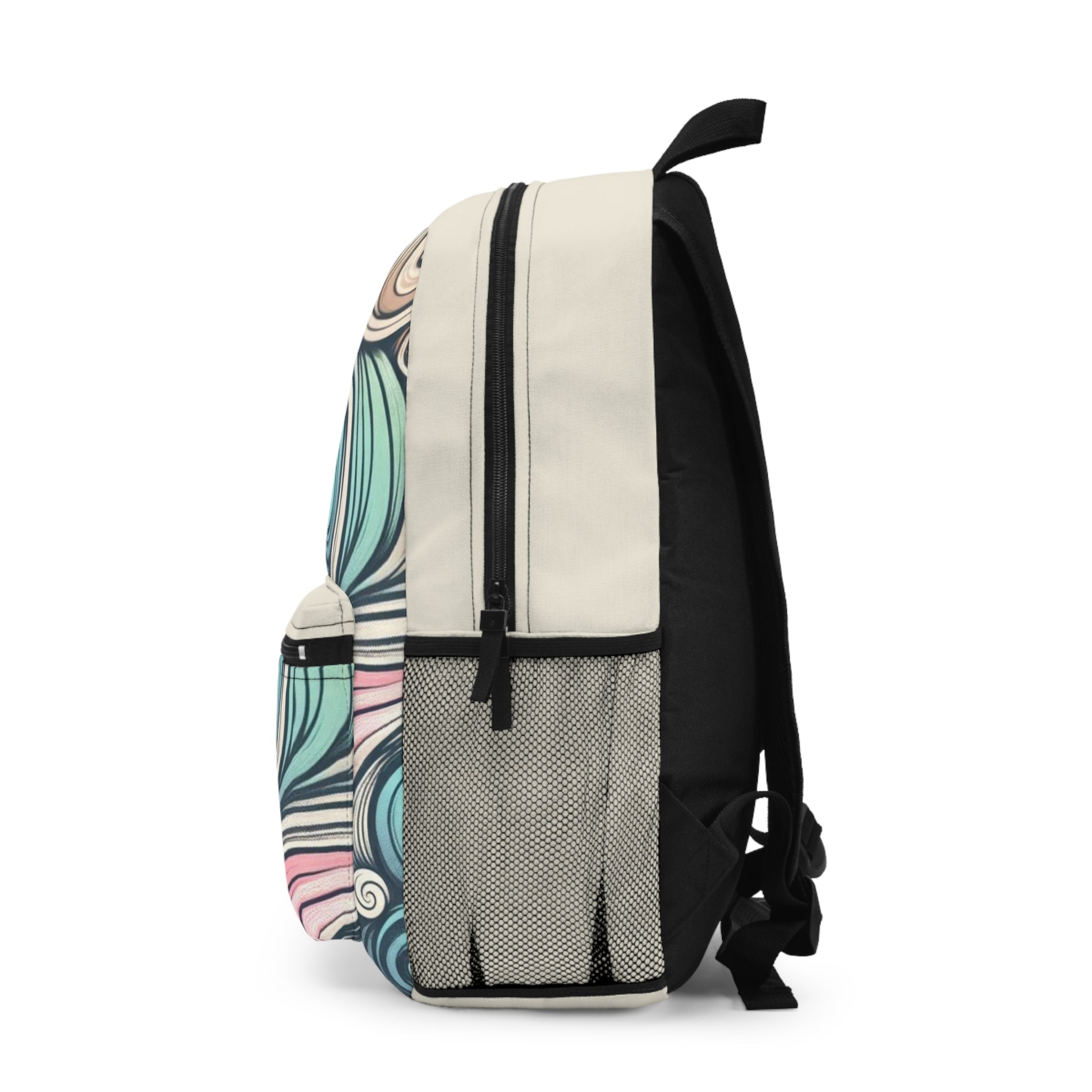 This backpack carries a calm, artistic energy — swirls of muted teal, dusty rose and sandstone curl across a clean canvas background. Lightweight yet durable, it moves easily from campus to coffee shops and city streets. Inside, a padded sleeve keeps a laptop or tablet secure while multiple pockets organize chargers, notebooks and a water bottle. Breathable mesh padding, adjustable straps and easy-access zippers make it comfortable for daily commutes or short day hikes. The subtle, handcrafted-feel pattern fits someone who values creativity, practicality and quiet colorways.