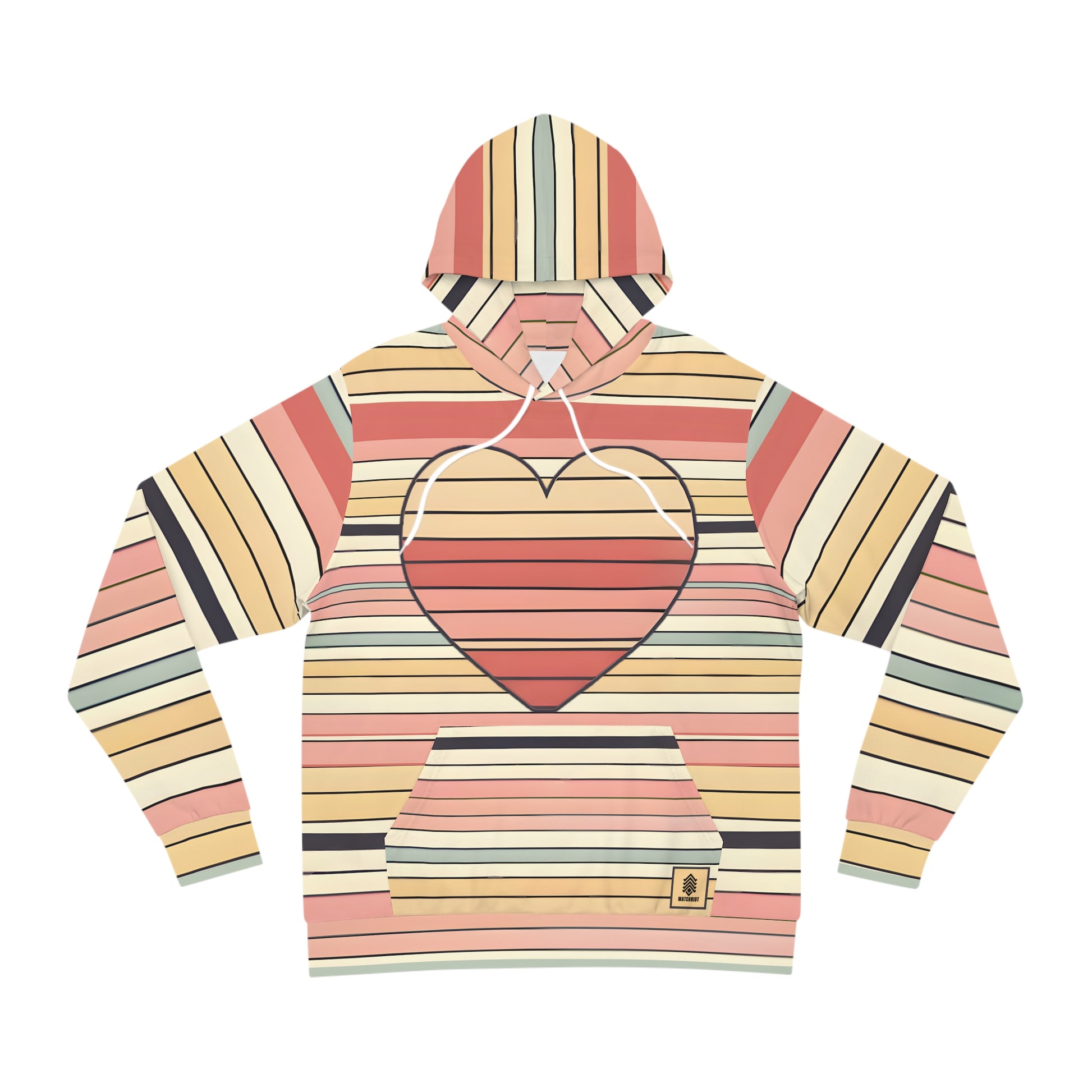 Celebrate love in style with this limited-edition all-over print hoodie, featuring a bold retro-inspired heart motif set against playful horizontal stripes. Designed in a palette of soft pinks, blush, pale peach, and creamy ivory, this hoodie brings a fresh, modern twist to classic Valentine’s Day vibes.