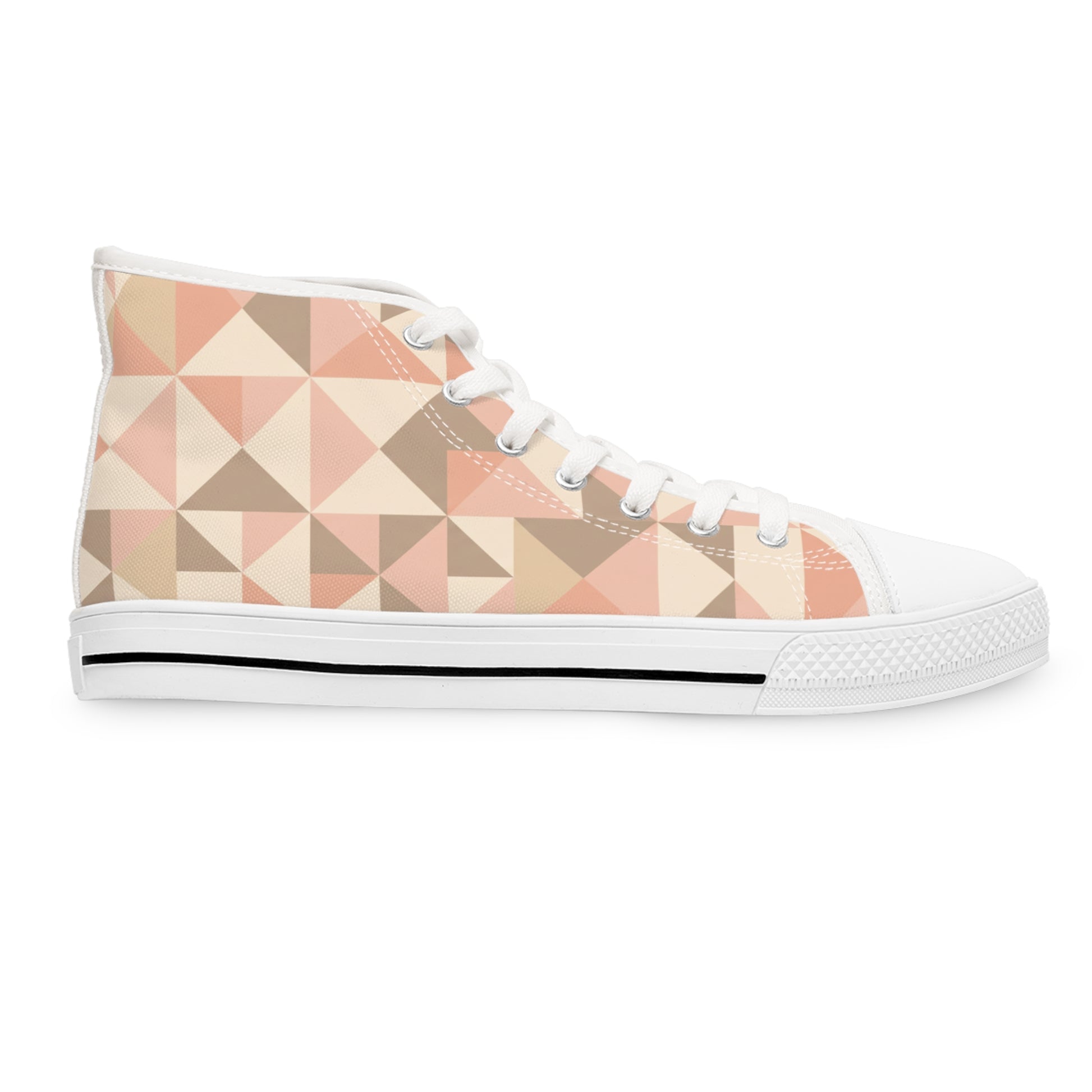 Bring playful, hand-drawn energy to every step with the Blush Mosaic High-Tops. Swirling pastel waves in dusty rose, blush, cream, and sand wrap the canvas for a continuous, artful look—like doodles come to life across your shoes. The padded EVA memory-foam insole keeps things cushy, while breathable polyester canvas keeps you light on your feet. Silver metal eyelets and pleather detailing at the round toe add polish and durability that only get better with wear. Lightweight rubber outsoles give you confident traction on city streets or weekend wanderings. Pair them with cropped jeans, a linen skirt, or your favorite vintage tee and let the pattern do the talking.